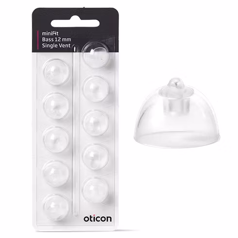 Dome Bass Single Vent MiniFit är specialdesignade för Oticons och Bernafons bakom-örat hörapparater med MiniFit-högtalare. Dessa domer är även kompatibla med hörapparater som använder Oticon Corda MiniFit tunna ljudslangar.