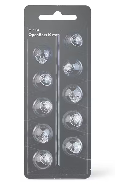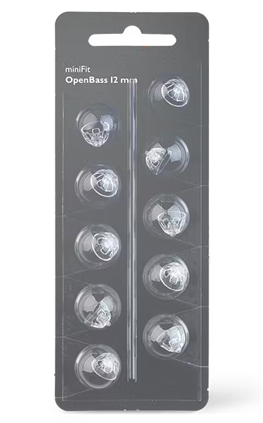 Dome OpenBass miniFit finns att beställa i fem olika storlekar för att passa individuella behov och olika hörselgångar. Varje förpackning innehåller 10 stycken domer, vilket gör det enkelt att byta regelbundet för att bibehålla både hygien och prestanda.