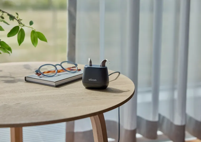 Effektiv och pålitlig laddning med ny design. Den nya laddaren för Oticon Intent miniBTE R är omdesignad från grunden för att ge snabb och stabil laddning.