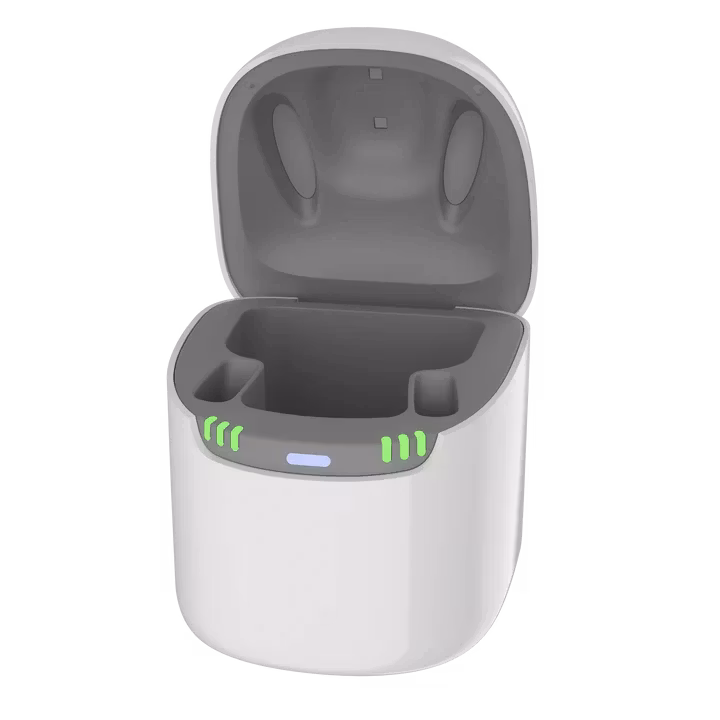 Signia Dry & Clean Styletto är en avancerad rengörings- och torkstation för RIC-hörapparater. Med automatiserad torkning och UVC-rengöring, skyddar denna enhet dina hörapparater från fukt, smuts och bakterier, vilket bidrar till förbättrad prestanda och längre livslängd.