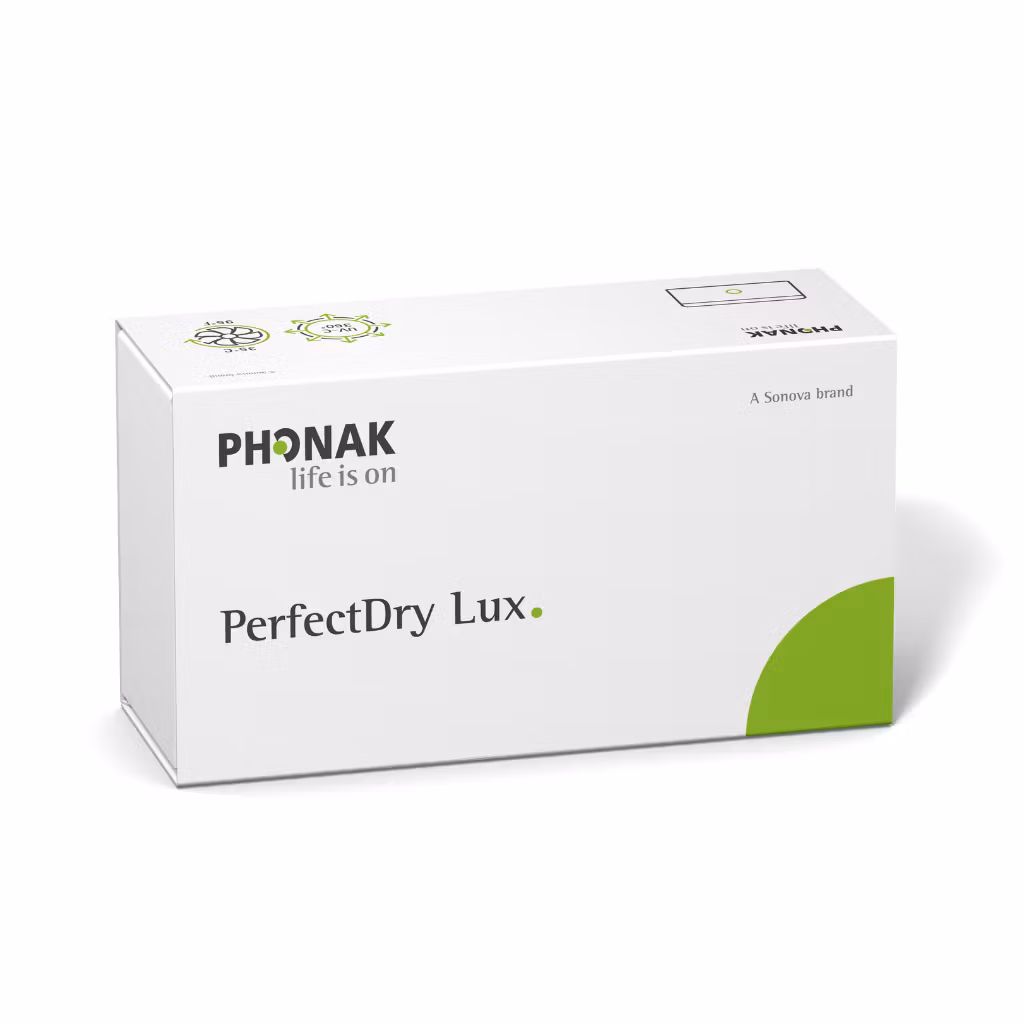 Med Perfect Dry Lux kan du lätt och smidigt desinficera och avlägsna fukt från alla typer av hörapparater på endast 45 minuter. Genom att lägga dina hörapparater i behållaren kan du lätt och skonsamt få bort fukt som samlats i de trånga utrymmena när du rengjort dina insatser. På så sätt minskar du risken att fukten påverkar prestandan av dina hörapparater. Perfect Dry Lux använder sig av pulserande varmluftsteknik upp till 35°C för en effektiv och skonsam avfuktning. Med sin 360° omfamnande UV-C-lampa elimineras över 99 % av bakterier och mikroorganismer på hörapparatens yta vilket förlänger hörapparaternas livslängd.