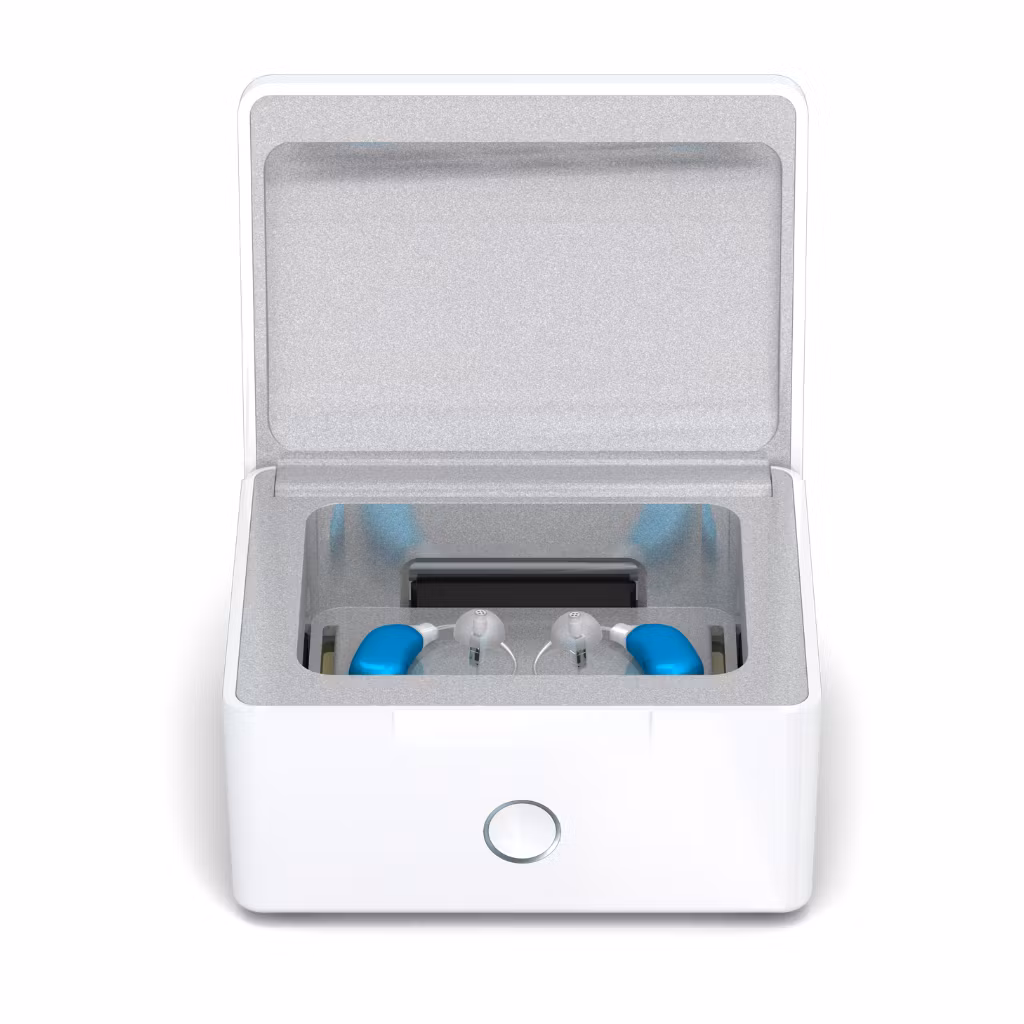 Med Perfect Dry Lux kan du lätt och smidigt desinficera och avlägsna fukt från alla typer av hörapparater på endast 45 minuter.