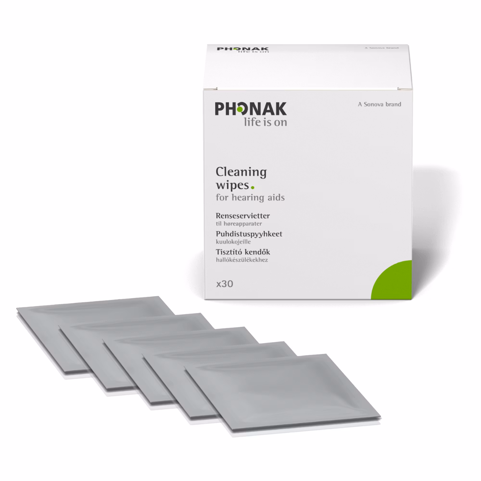 Rengöringsservetter för rengöring och desinficering av alla typer av hörapparater. 30 st rengöringsservetter som desinficerar och avlägsnar öronvax och smuts från dina hörapparater. Servetterna kan användas både på hörapparatens hölje och på öroninsats eller dome.
