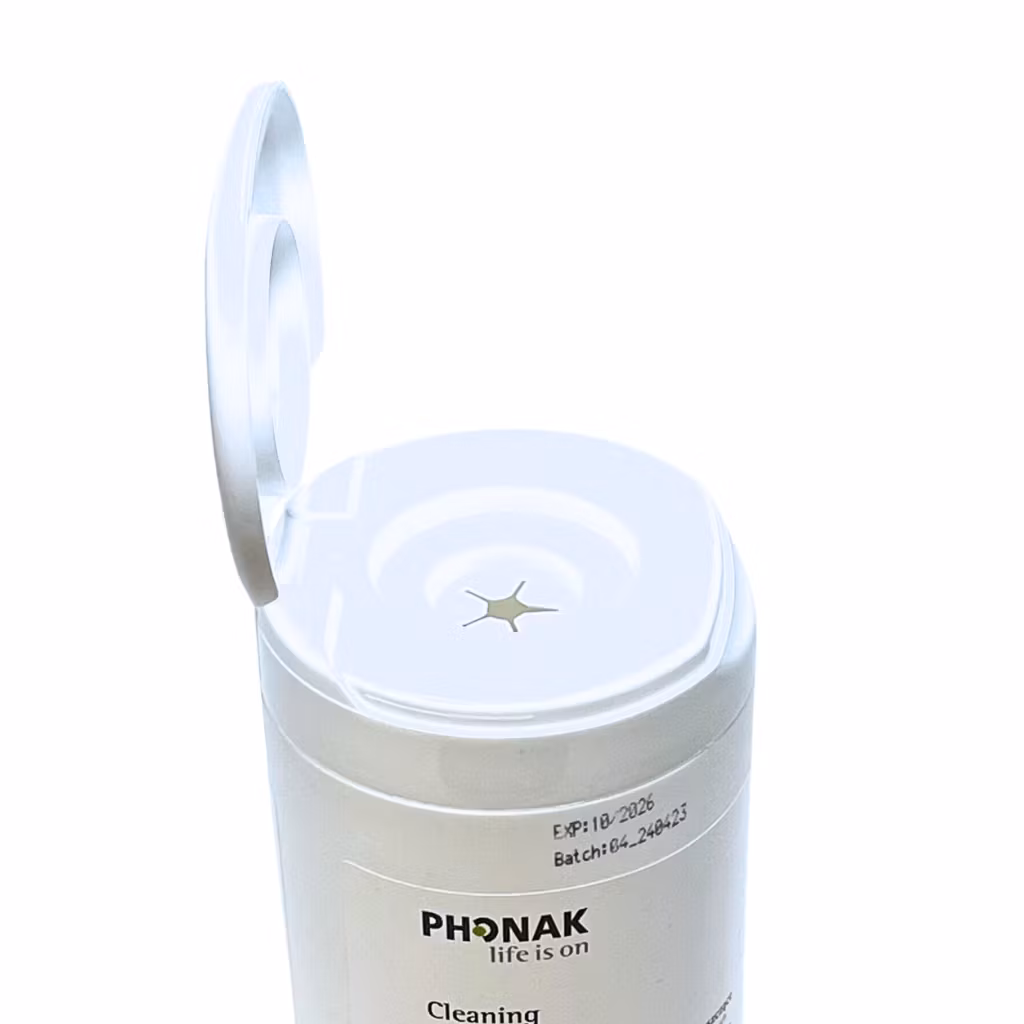 Rengöringsservetter för rengöring och desinficering av alla typer av hörapparater. 90 st rengöringsservetter i praktisk behållare.