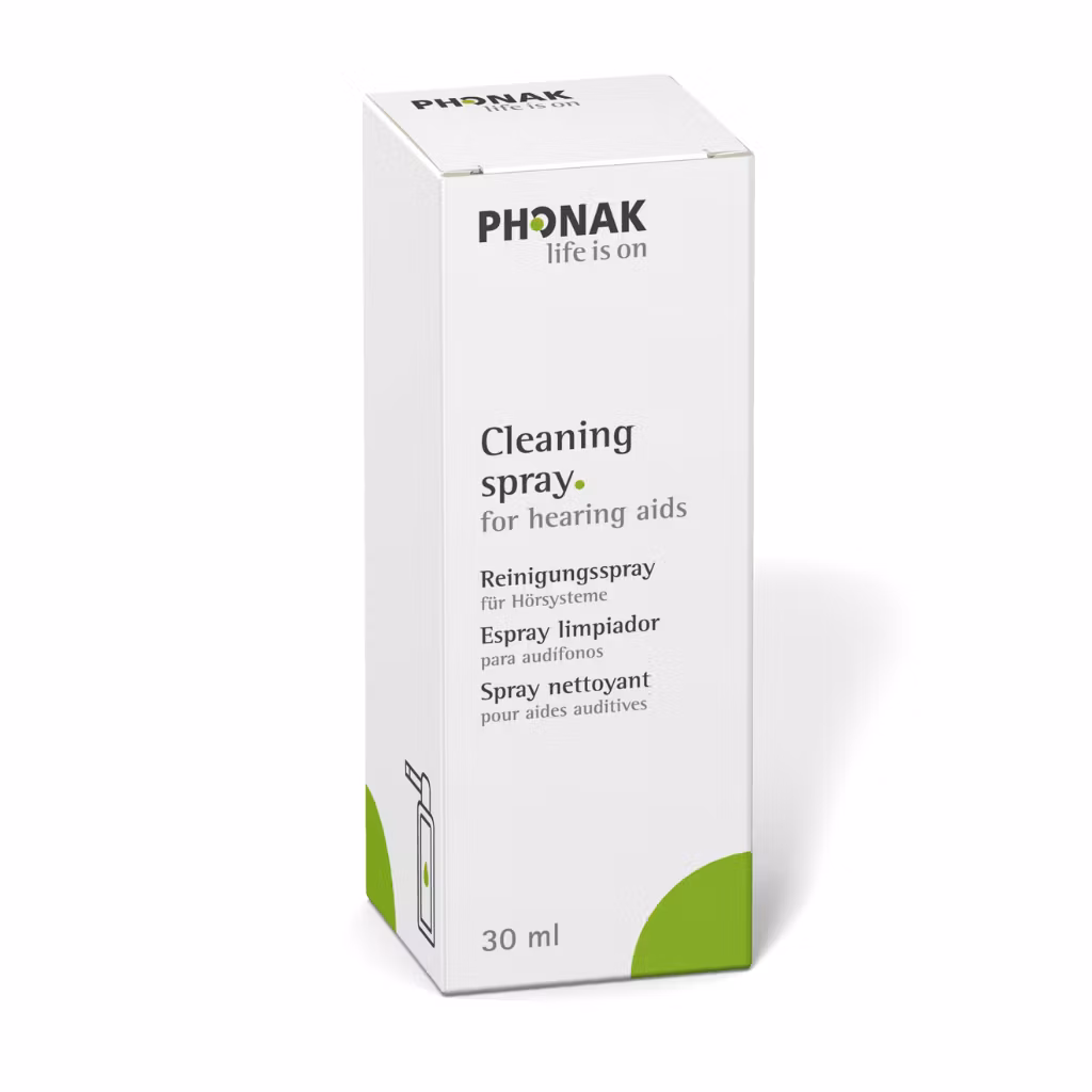 Rengöringsspray för rengöring av alla typer av hörapparater. Effektiv rengöringsspray som avlägsnar öronvax och smuts från dina hörapparater.